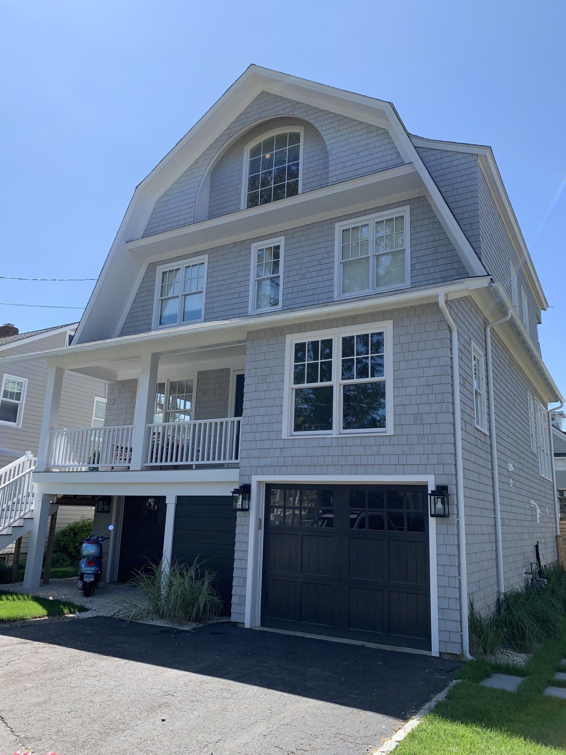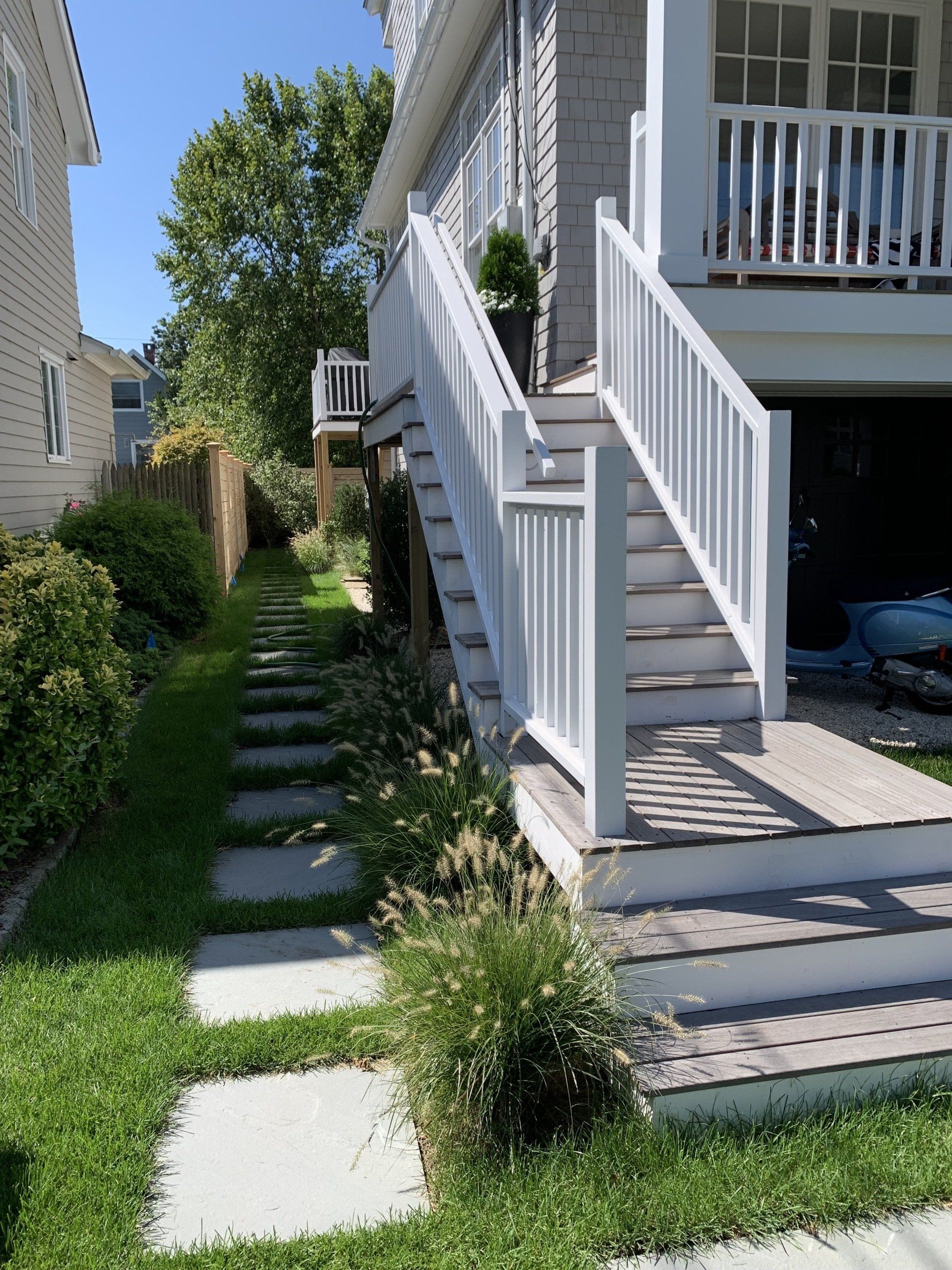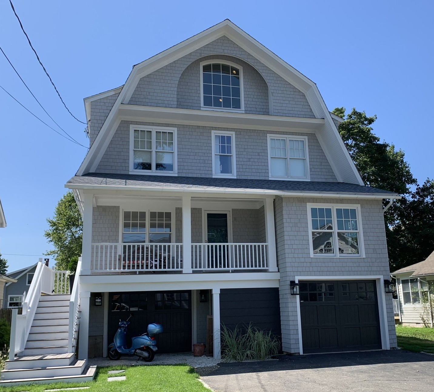 A modern, farmhouse-style addition that expands living space and creates a balcony terrace with a tree-top view.