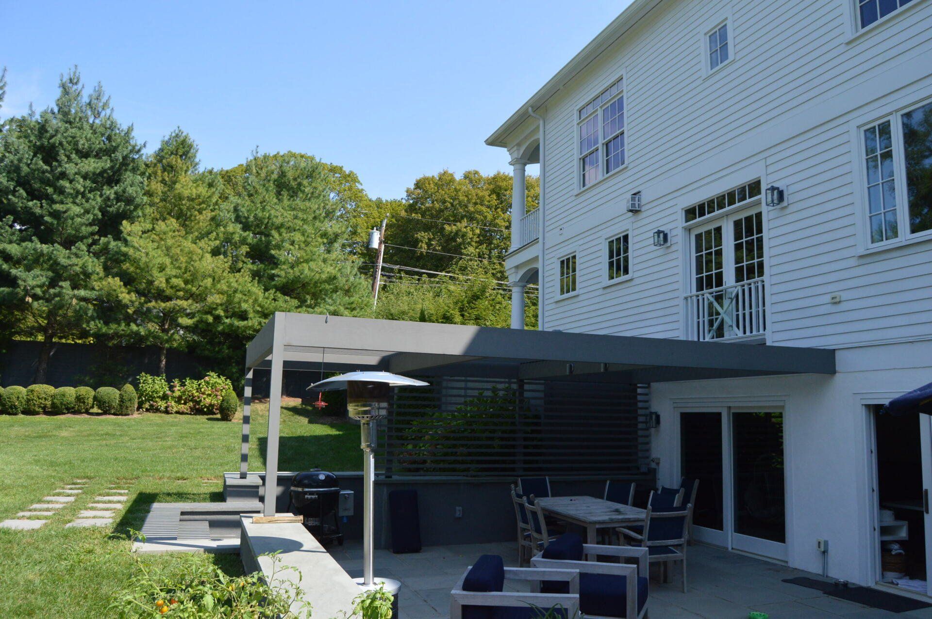 Expanding outdoor living with new terraces and shading pergolas, added space for a fire pit and outdoor dining, makes it easy to entertain, play, and relax.